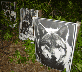 This ambitious project runs in conjunction with a 2year MA Photography research degree; as we transform the space (an under-used indoor picnic area) to create an educational wolf-related installation combining imagery and stories relating to Canadian wolves and bears and the Rocky Mountain environment, the Iberian Wolf of Northern Spain, myths from the Scottish Isles and current issues in the Polish wilderness.