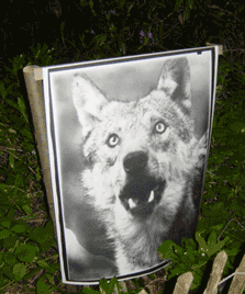 RESIDENTIAL ART AT WILDWOOD 2001 - 2004 This project began as a study of a family of European wolves and a season of public talks about that study at the park; progressed to an out'stallation along the woodland trail, several public exhibits in the Community linked to Bluehouse's regeneration ethos, invitations to participate in The Canterbury Festival, several Herne Bay festivals, The Whitstable Oyster Festival, and The Broadstair's Folk Festival, a series of postcards and imagery for sale to raise funds for Wildwood in its earlier days - prior to establishing itself as a charity and in support of important small mammal conservation and breeding programmes that were happening at the time, a weekend of public art, another - even bigger - out'stallation and an evening of picnic theatre and the first performance of 'Wolven Tales', and the production of wolf howl greeting cards.