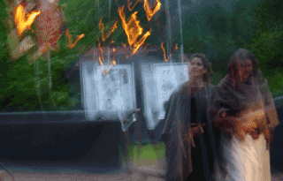 Since 2001 performance artists from The Faerie Village of Twlyth (members of The Art Organisation) have come together to promote the opening (or closing) of each wolf related exhibition with their ever-progressive theatre performance of 'Wolven Tales'