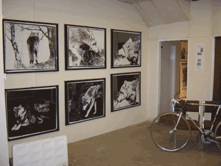 | Broadstairs : This was the second possession of a vacant High Street shop to promote Wildwood with an exhibition of wolf images and sculptures. This time in Broadstairs during The Folk Festival 2002 . | ||